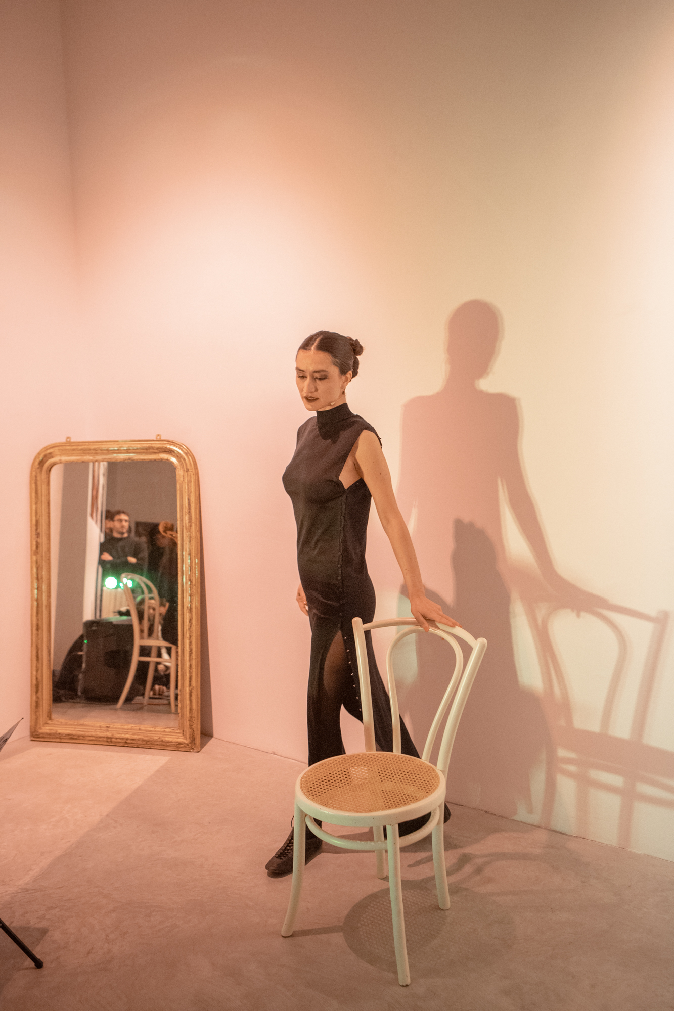 Il Tango Brucia is a monologue dedicated to a great love: tango, which the artist has been practising constantly for eight years. This performance piece was created during a period of intensive study in Buenos Aires. The text of the monologue is a tense and dreamlike collection of notes from tango nights spent in the Argentine capital: streams of consciousness, notes on the technicalities of tango and fragments of conversations with dancers, musicians and regulars of this world. Tango, a complex form of dance but also a form of lived subculture, is described as a form of self-discovery, perhaps a kind of authenticity, in the continuous oscillation between the relationship with one’s own body, the body of the other and space.